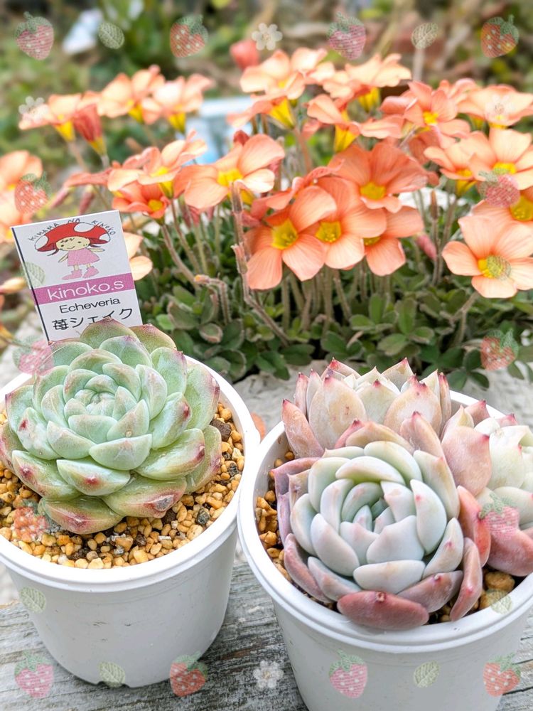 苺シェイクにストロベリーフラペチーノって、めっちゃおいしそうな多肉ちゃんたち〜🍓
