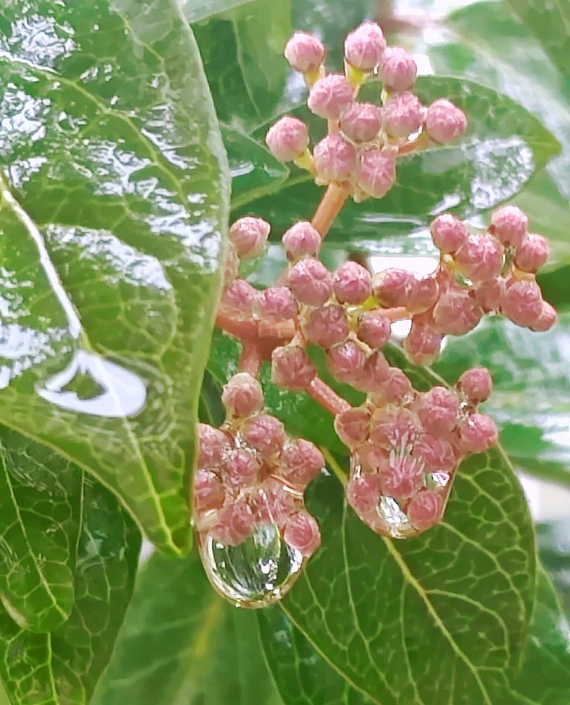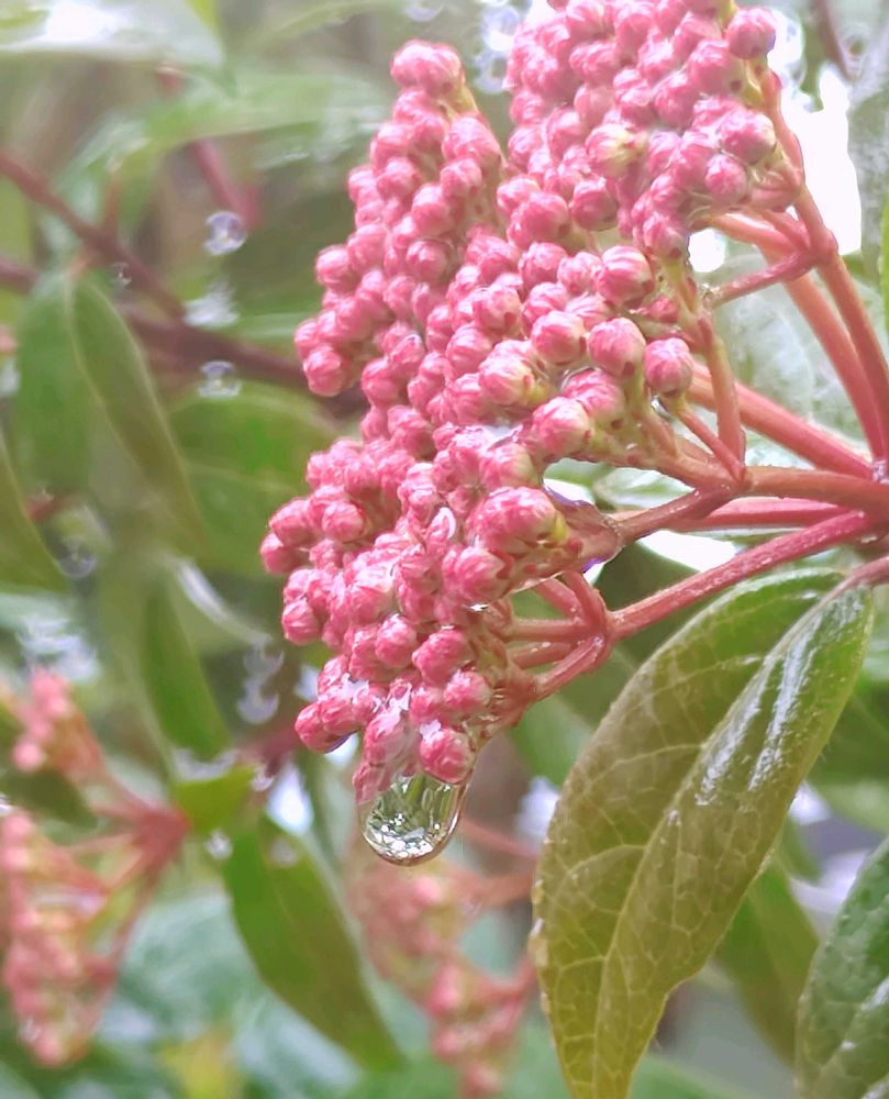 ③④ぎゅっと寄せ合っていたビバーナムの赤い蕾たち