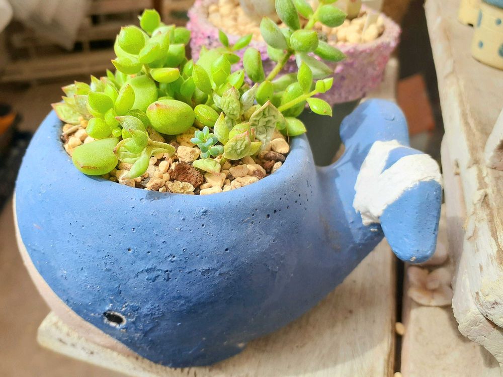 1: のりたまちゃんに頂いたくじら鉢+ぺンデンス 家の中で冬越ししました😊