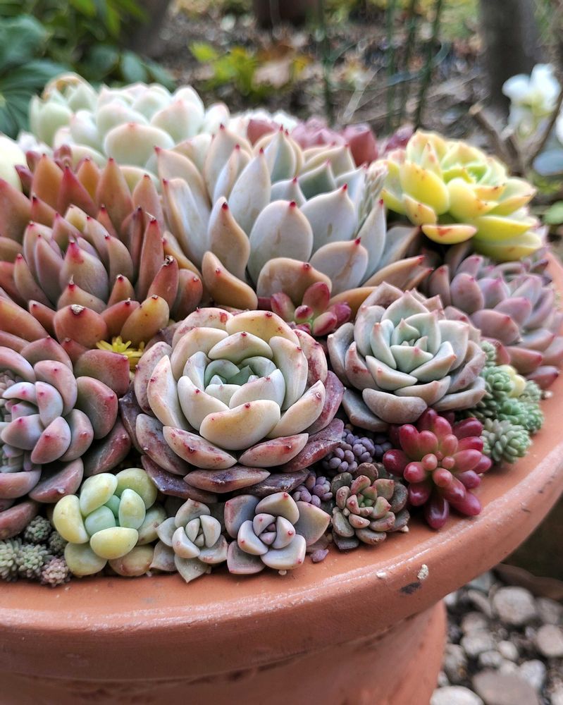 多肉だけ寄植えしてたけど隙間あるし鹿沼土もこぼれるから 小苗とセダムをちまちまと挿しました😊曇ってて寒くない…外で多肉事するのに最高 楽しい🥳