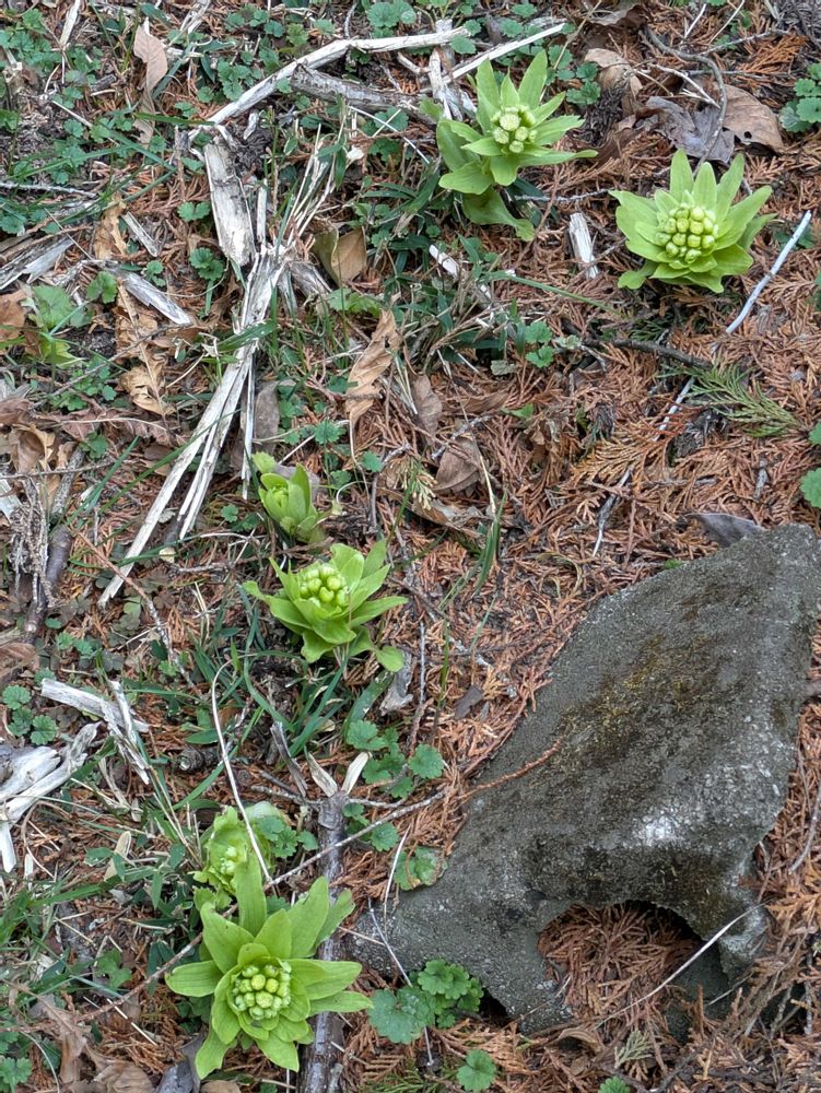 ①②フキノトウが生えています 雄株と雌株があるそうです