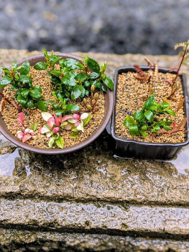 ヒサカキ(白天)極矮性ヒサカキ、イソザンショウ、ツクモドウタンツツジ。