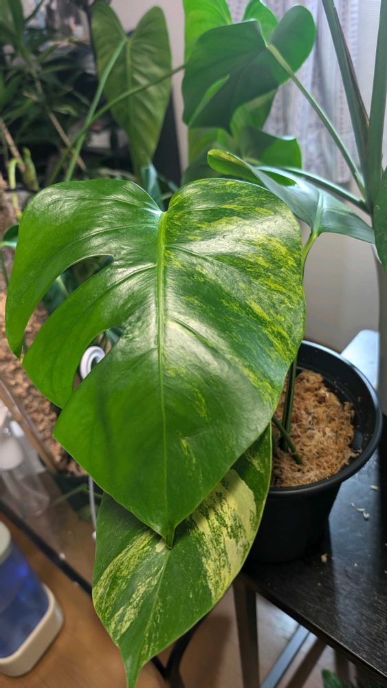 モンステラ・ボルシギアナの黄斑オーレアをお迎えしました。今年で細かい切れ込みまで成長してくれたら嬉しい😁 普通の斑入り同様、枯らすのが怖いので緑色が多い葉を選びました😚