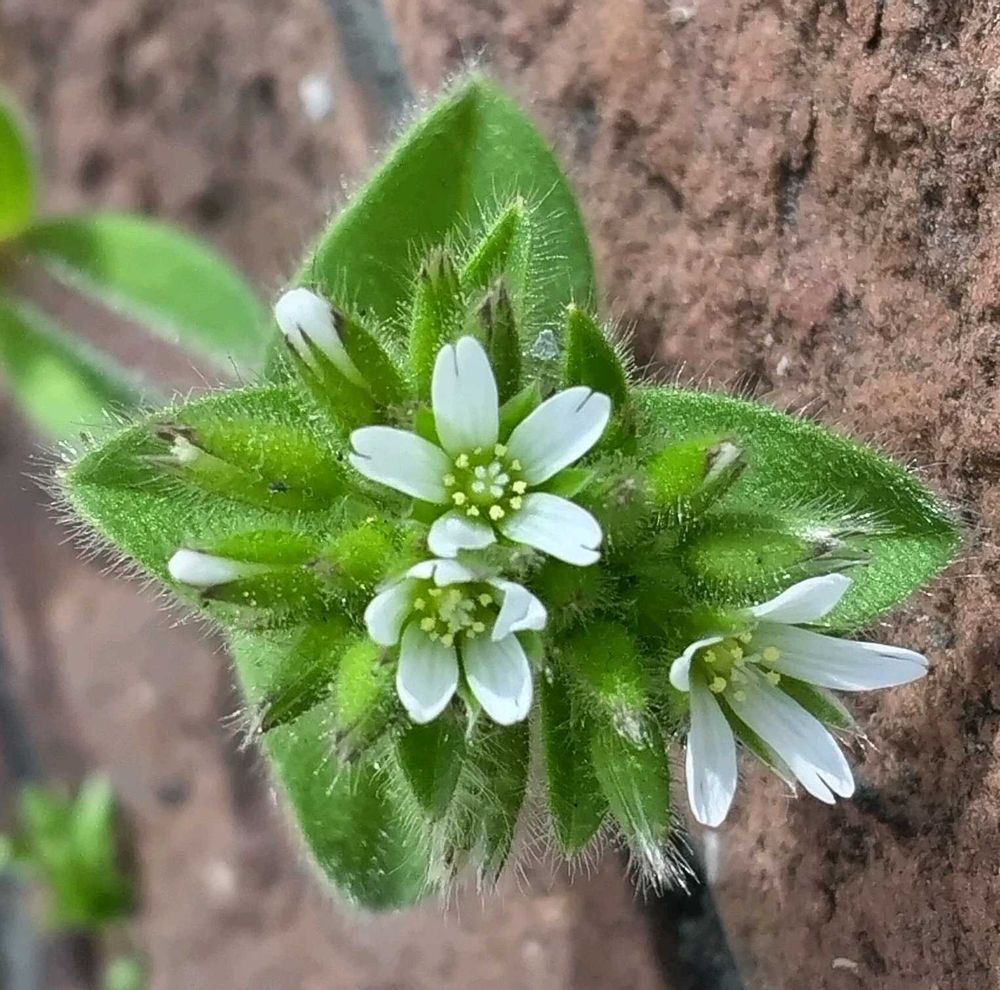 花壇のレンガと歩道の隙間に1本だけ生えていたオランダミミナグサ。