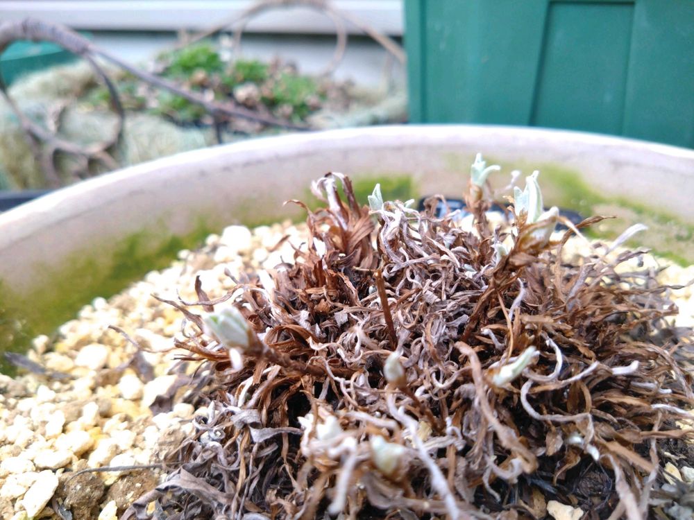 実はつい先日、上っ面を少しむしってみたんです、その時は枯れ成分しか見当たらなかったのですが、昨日先端に🌱を発見!しまった!新芽むしったかも💦とちょっと複雑な芽吹き確認でした😅