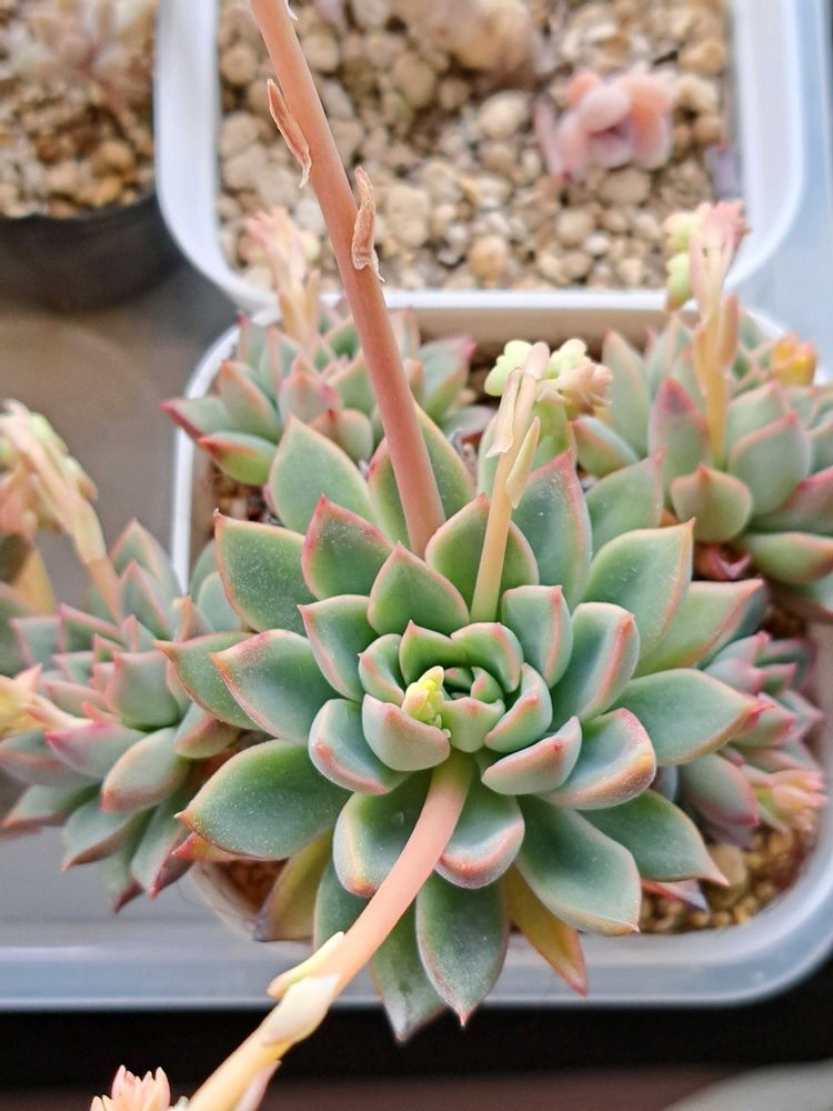 1軍の多肉ちゃんたちがいるこの場所は開花早いです!