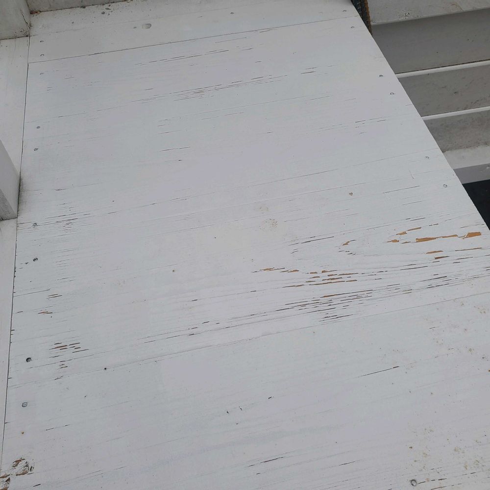 ③雨の中弟が昨年から放置の新しい多肉棚を設置してくれました♪でも新しいのに…雨晒しだったから④のようになって…💦