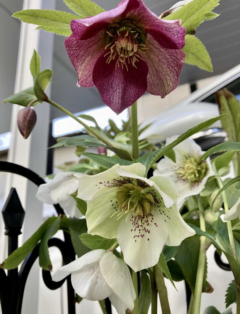 玄関前の地植えのクリスマスローズが沢山咲いてくれました♪色んなお顔ですね╰(*´︶`*)╯♡💕