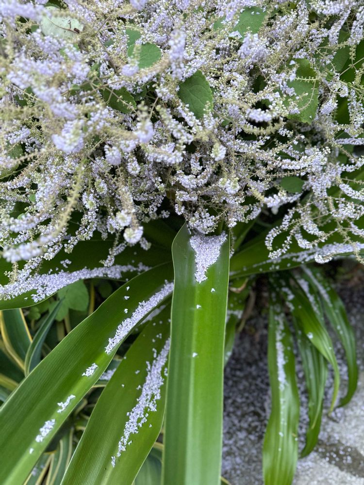 ぎりぎりさん家のメイフラワーはモリモリだから落花もモリモリでとても綺麗ね〜💜💜💜🌿