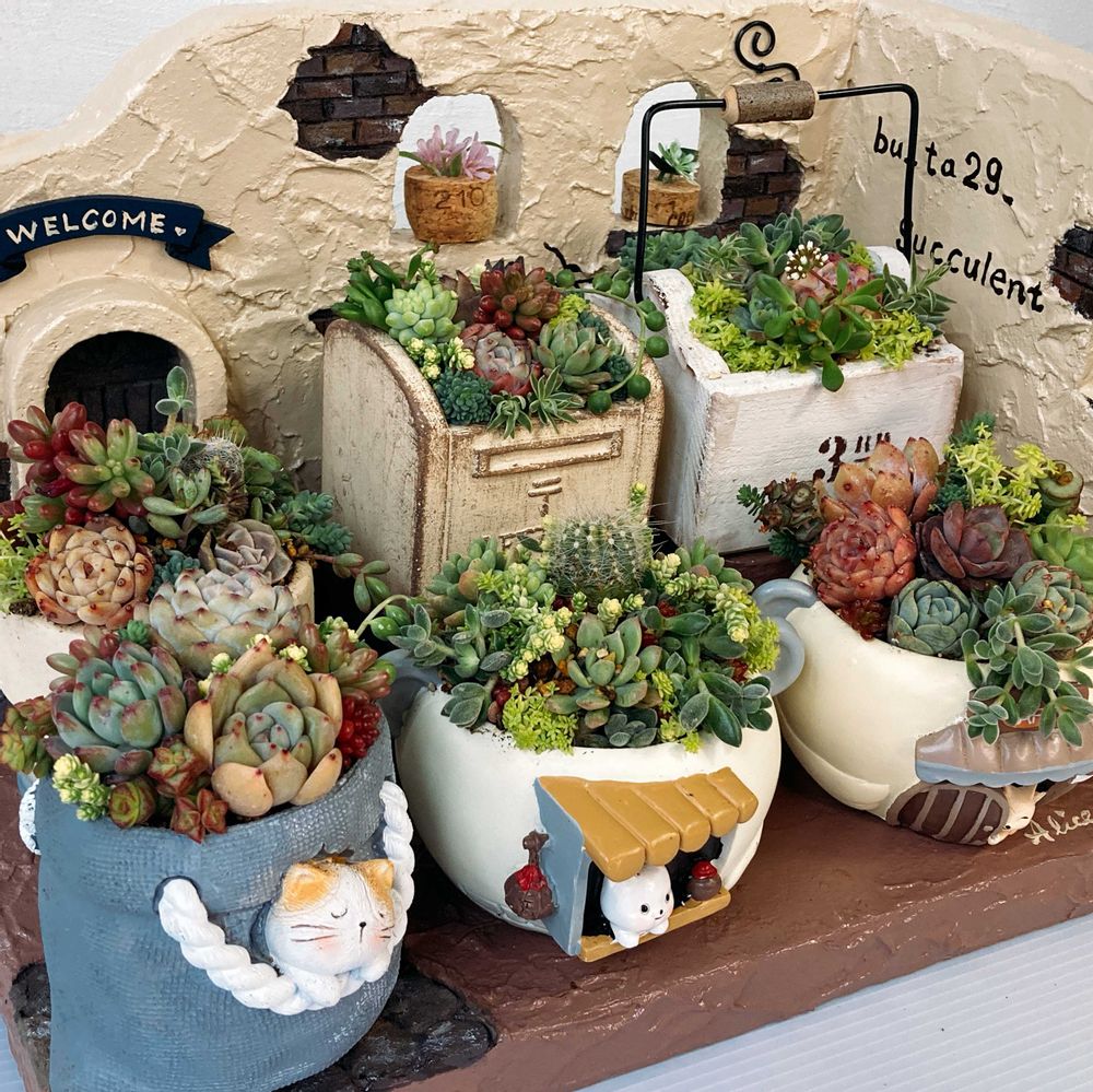 多肉植物の寄せ植えワークショップに参加したら、多肉ちゃんにハマってしまいました。 最近育て始めたばかりの初心者🔰です。2024.2〜 ハンドメイドも大好きで、元々デコパージュ(ペーパーナプキンを使って様々な物に貼り付けて加工する)を教えたりもしていました。