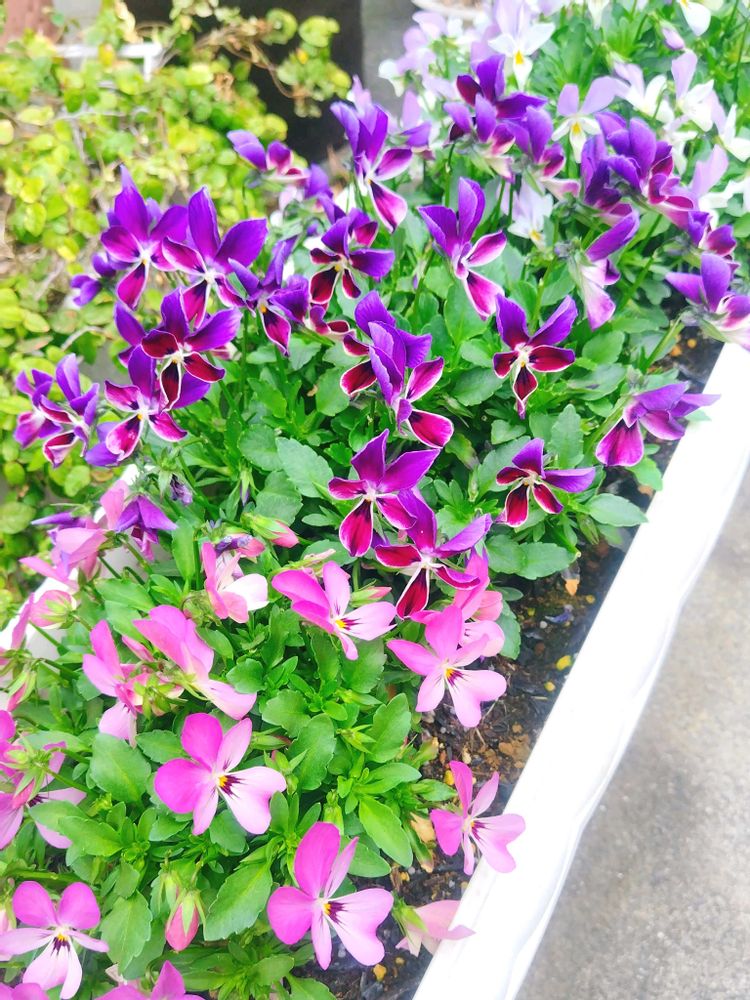 ①ビオラのポットが花盛りです🥰