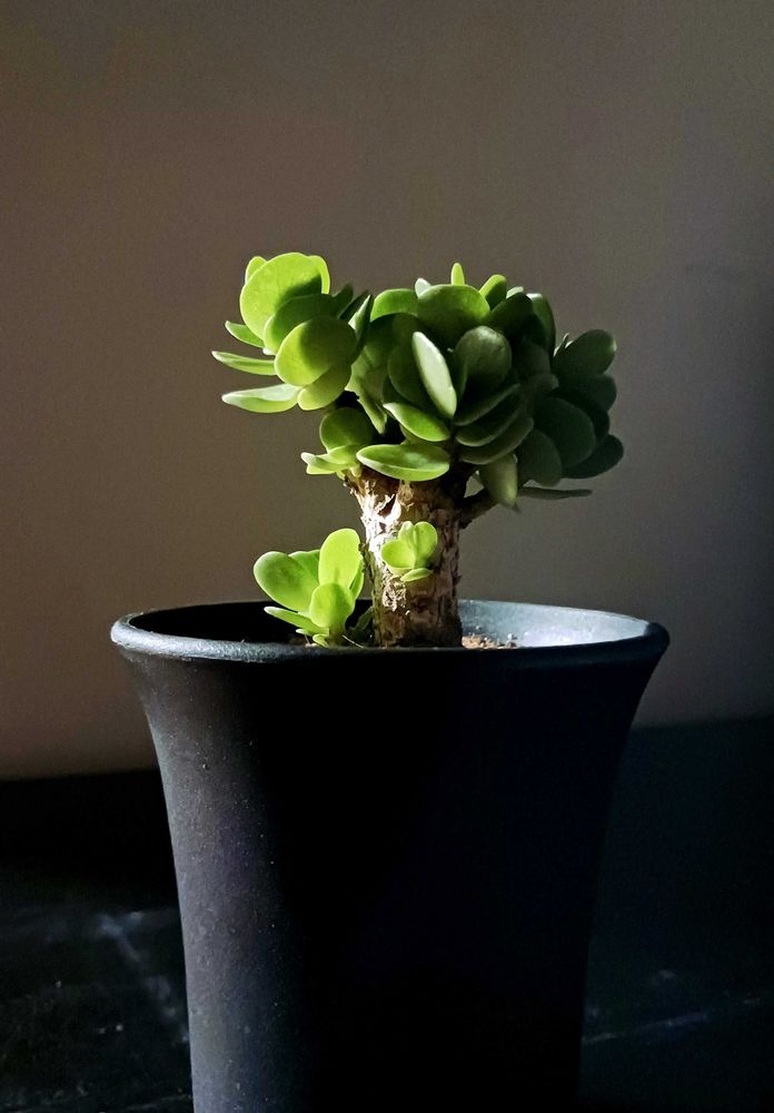 コルクっぽく木質化した幹に二枚貝みたいな丸い葉っぱ。可愛すぎる💚