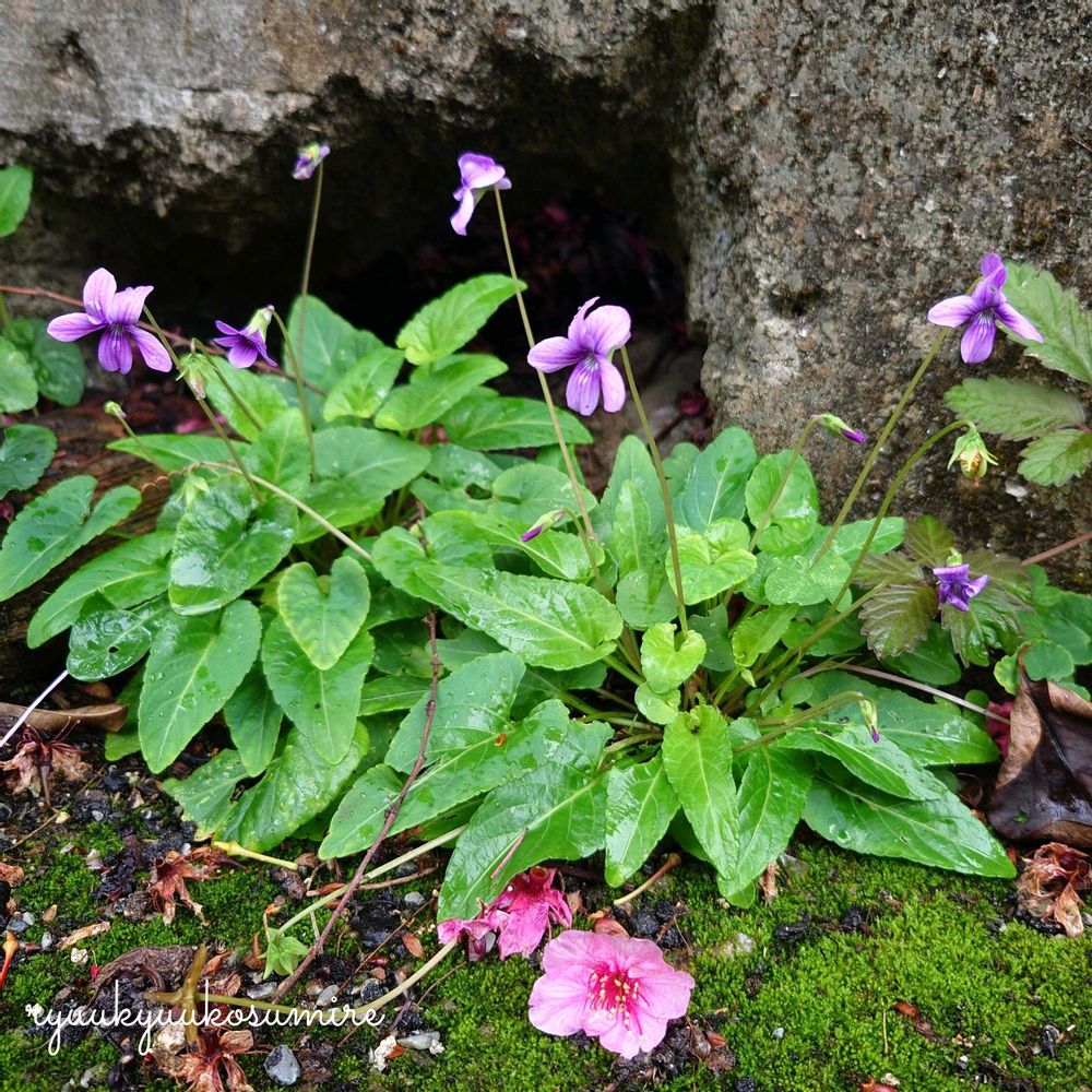 pic3は、ほぼ葉桜だったけど、お名残惜しんだ桜と大好きなリュウキュウコスミレのコラボを近所のスージ道から
