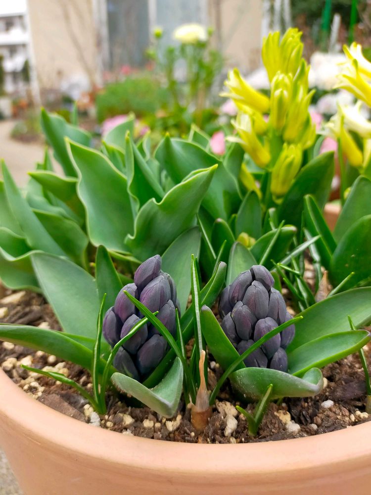 今シーズンは、花苗との寄せ植えはやめて、球根のみ『ヒヤシンス』