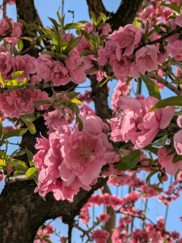桃の花満開の花街道🩵🩷