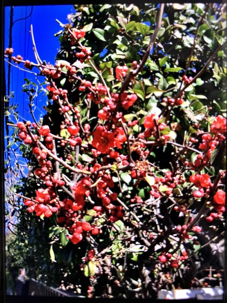 ①今日はさいたまマラソンなので家の周りの道路の交通規制が厳しいです。 ②キリンソウの新芽 ③散歩道のボケ