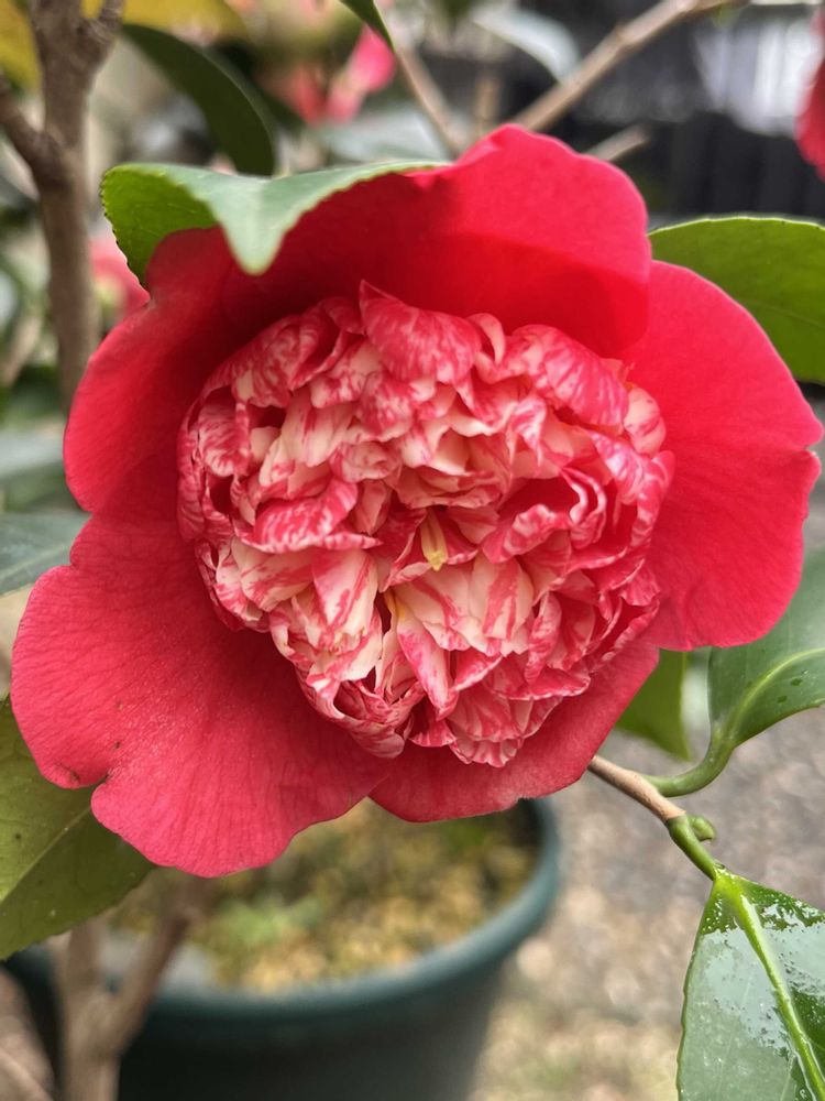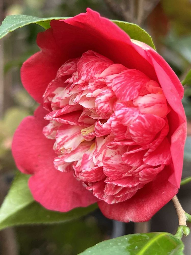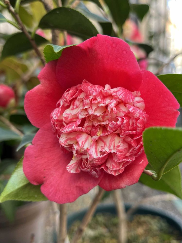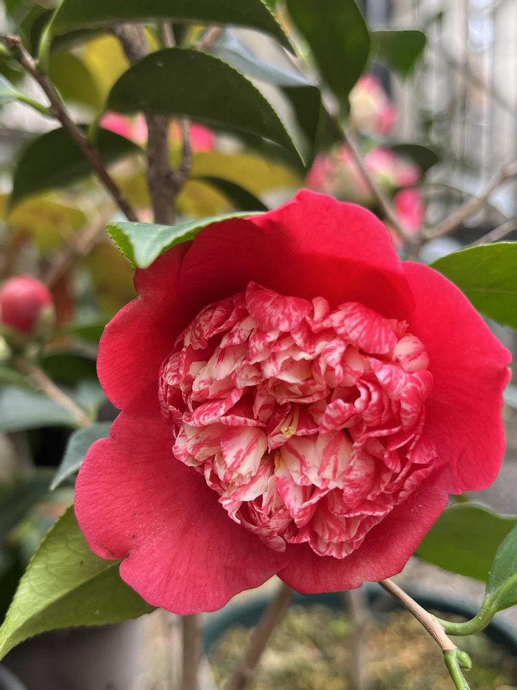 椿・卜半錦が咲き出してます❤️小輪だけど、今年はなんだか全体的に大きめで嬉しい- ̗̀ෆ(˶'ᵕ'˶)ෆ ̖́-