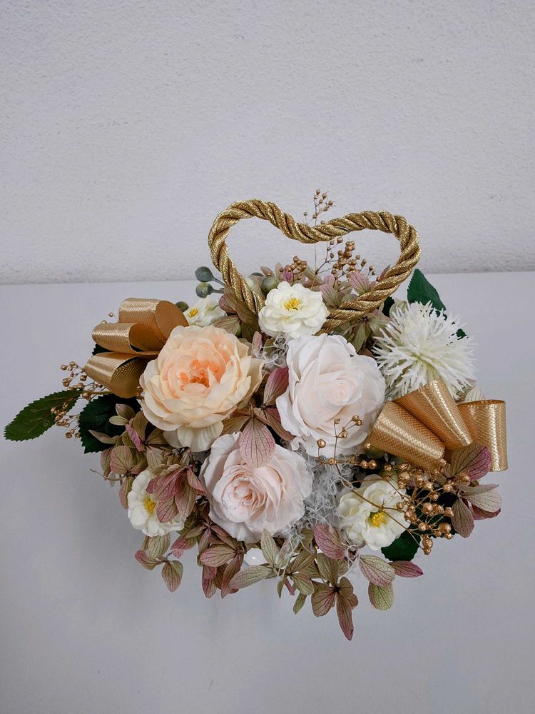 落ち着いた色合いのステキなアレンジですね〜 ハートのチャームがバッチリ効いてますよ💕