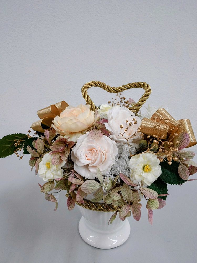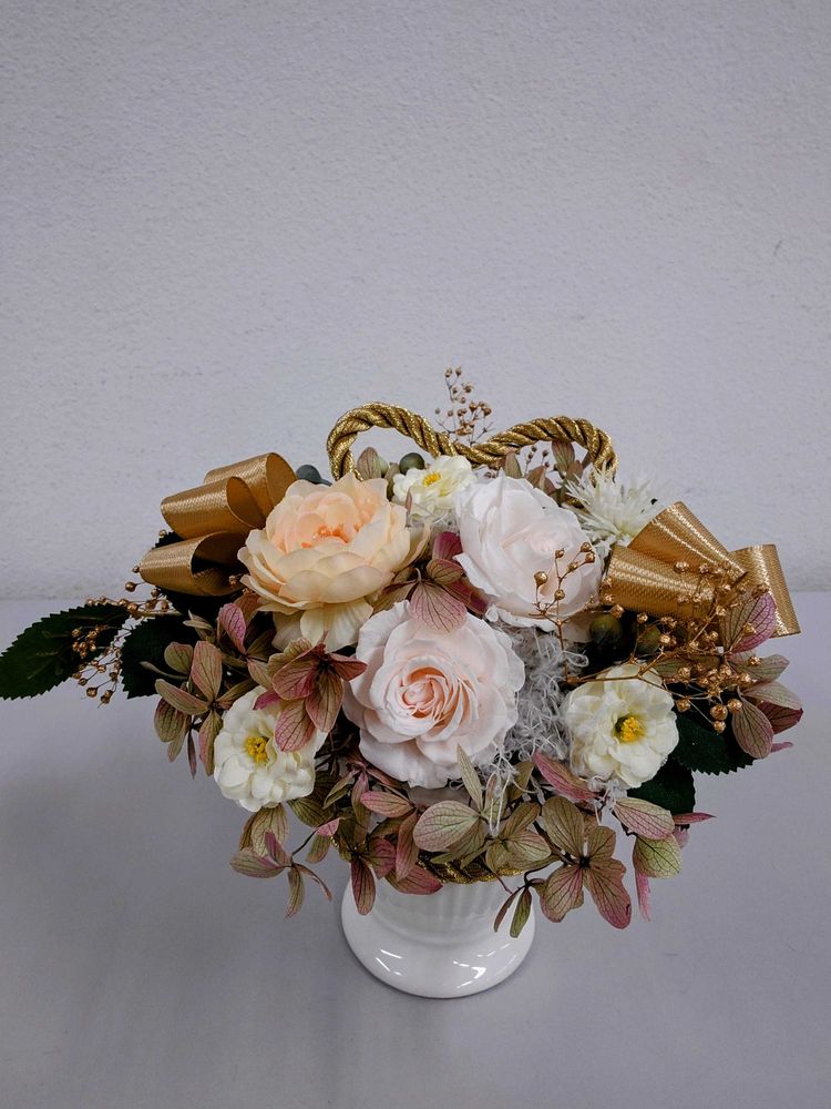 私がアレンジの資格を取った30年前はまだプリザがなかった時代で、シリカゲルにお花を埋めてドライフラワーを作ったりしてましたね。