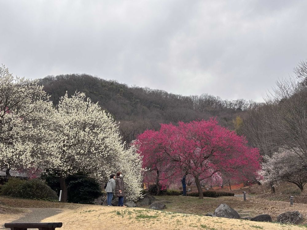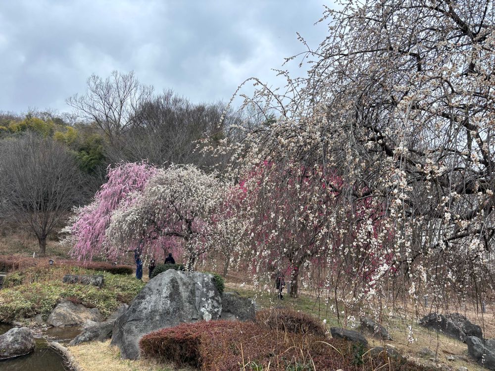 みかも山公園 万葉庭園の枝垂れ梅が満開になりました。