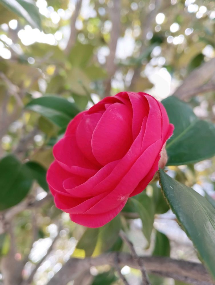 山茶花、真っ赤〜♥まだ咲いてるんだね〜。北海道では自生できないお花なの〜。