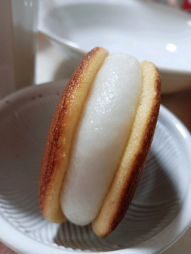 大福どら焼き半分こ、いただきます(´○`*)あーん♡