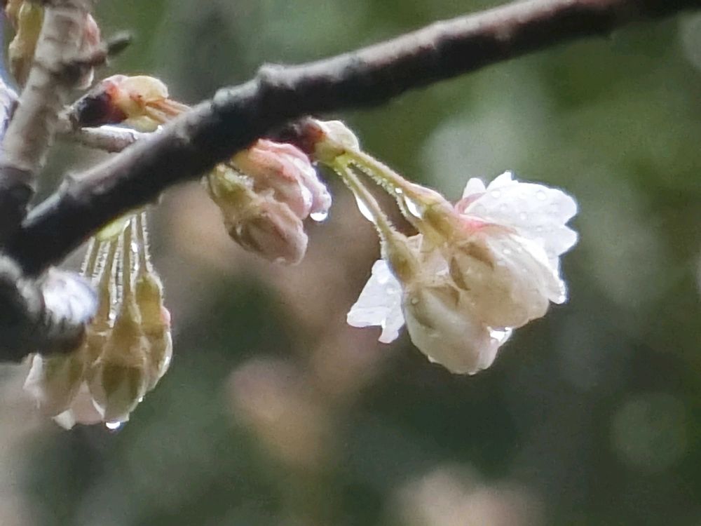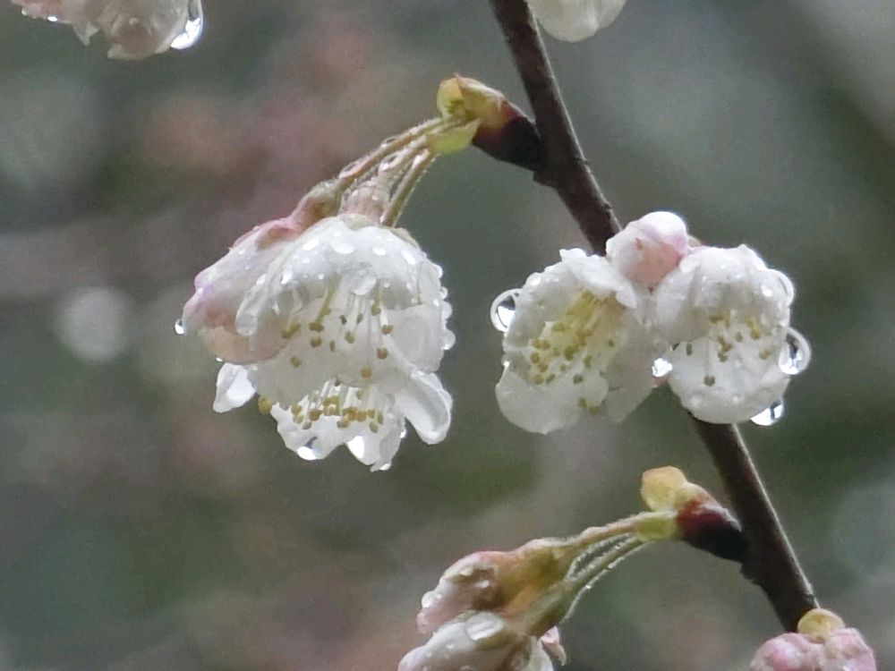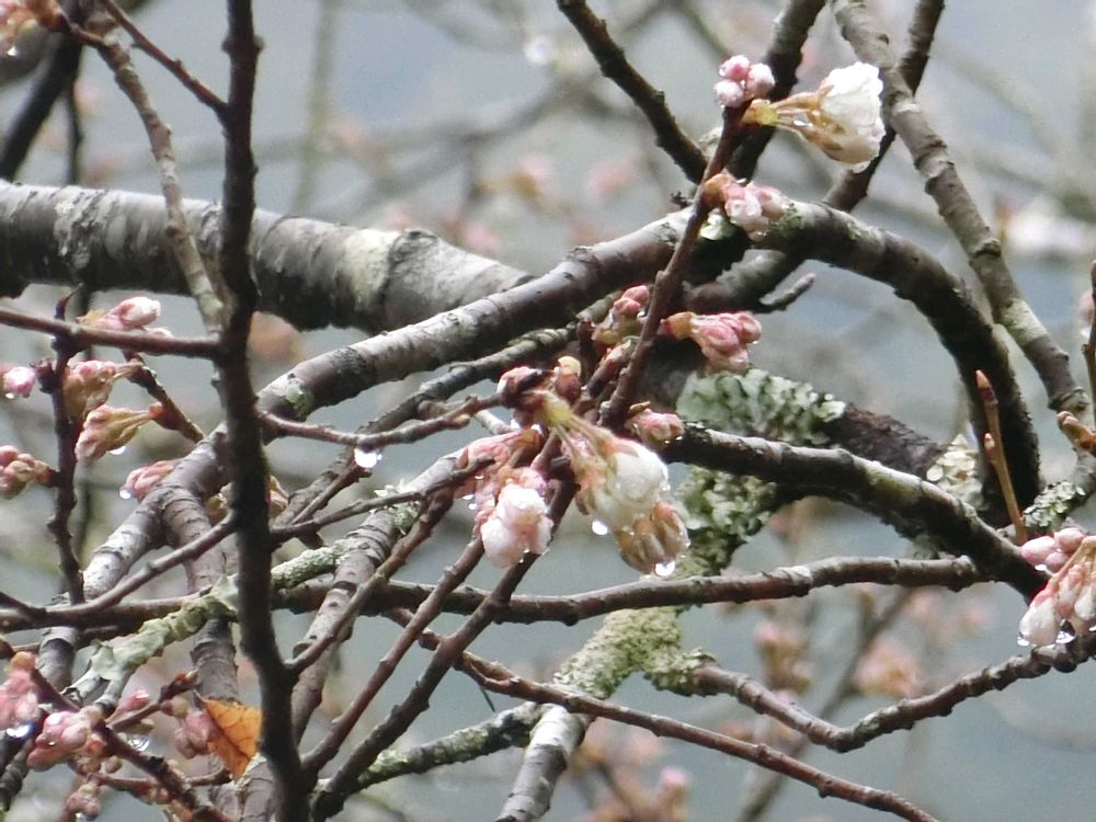 雨に濡れた黒い枝が、かえって花を引き立てているように思います