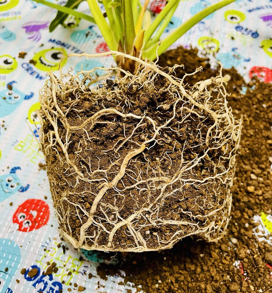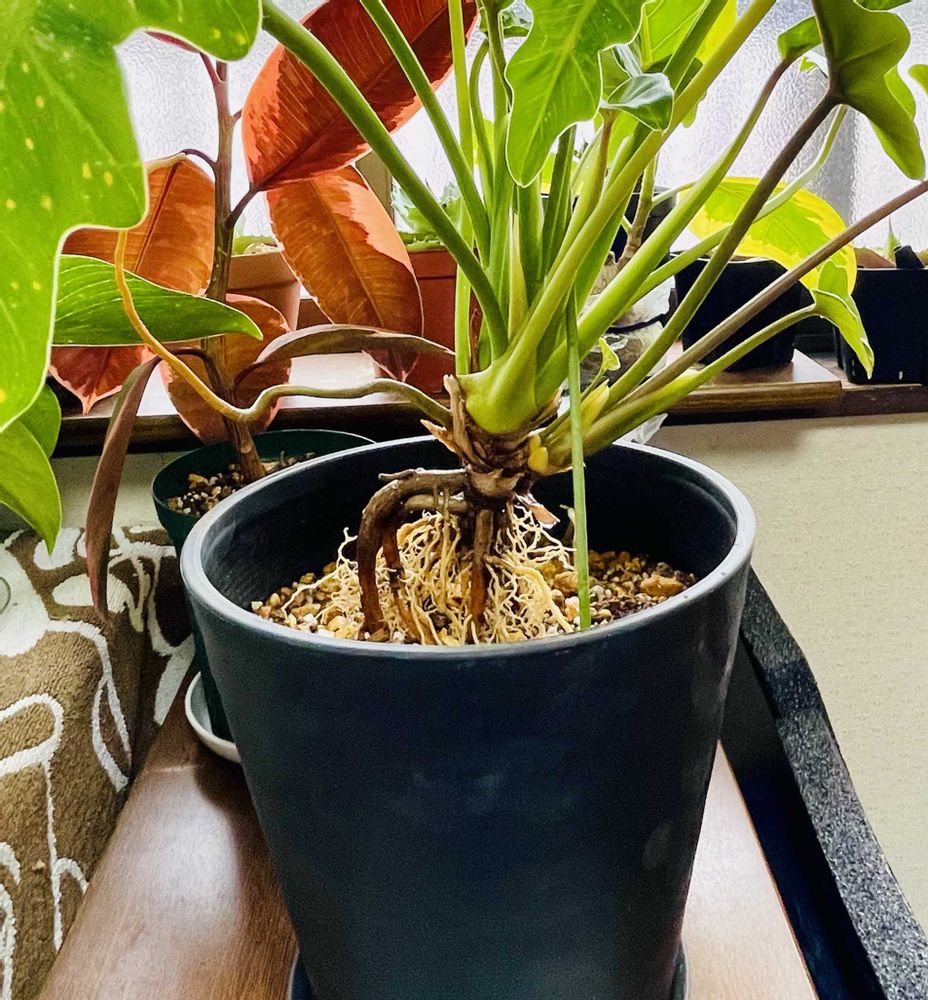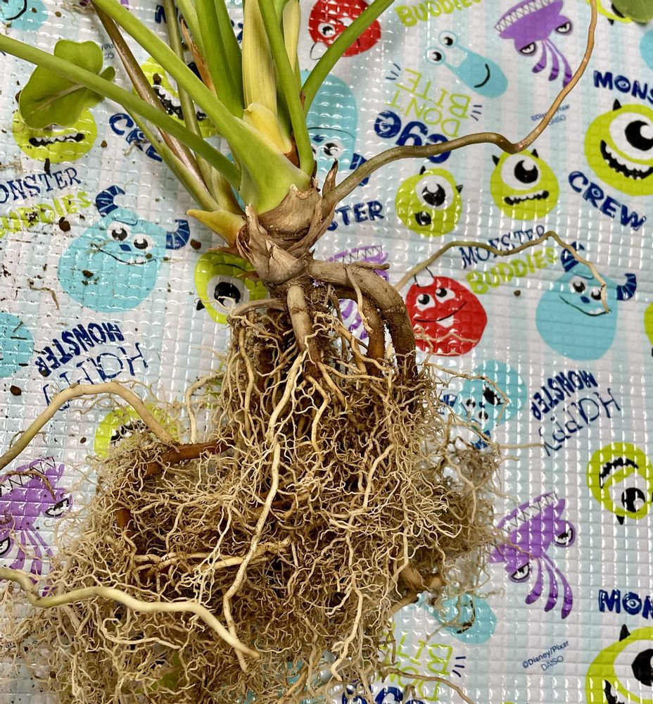 鉢からなかなか抜けず、底をニッパーでカット✂️根、気根パンパンです。