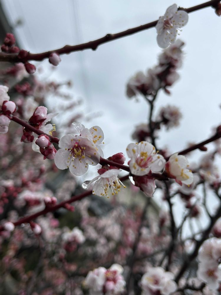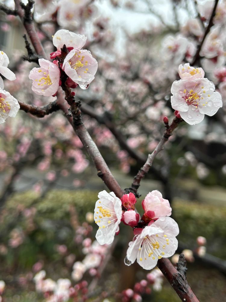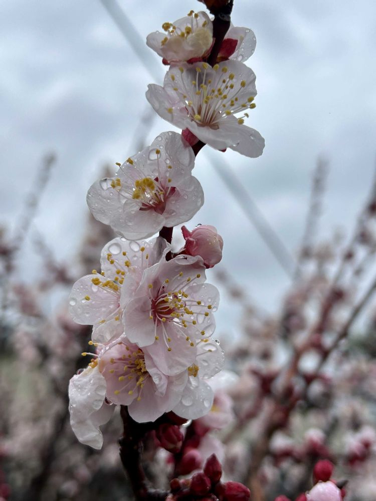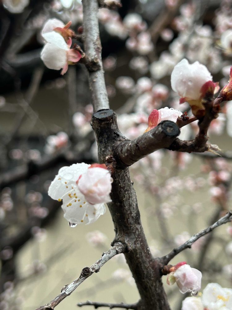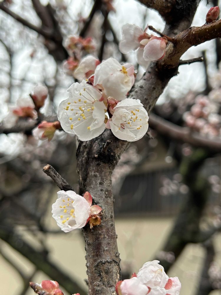 杏子の花が、雨粒でキラキラして綺麗ですね(´。☆ω☆。 ` )