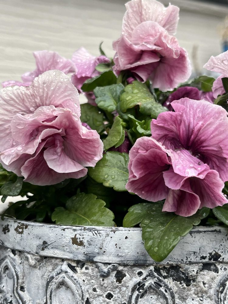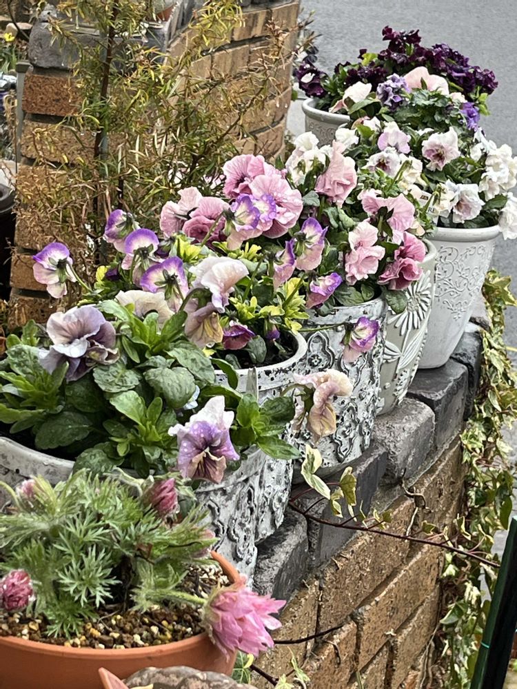 塀の上のパンジービオラもたくさん咲いてきました💕
