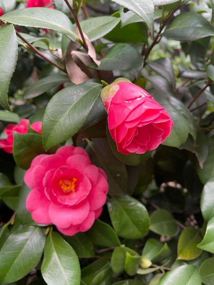 No.713 散歩道の植物とお散歩ちゃん12月①2025/1218白侘助、ビワ、オキザリスバーシカラー・・・