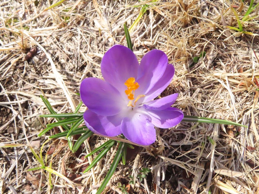紫色の「クロッカス」がポツリ、綺麗に咲いていました。 パチリ