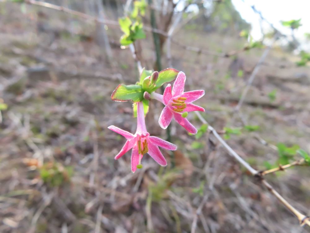 「ウグイスカグラ(鶯神楽)」に可愛いお花が数輪。