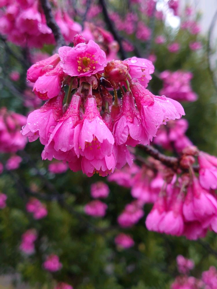 1️⃣2️⃣今朝の出勤時、雨の中☔色鮮やかに咲いていました🌸😊🩷