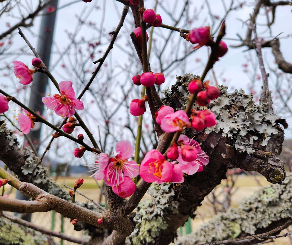 今年は雪が多くて寒くて、梅もやっとここ数日で満開の木もありますが3割程度?位咲いています🌸
