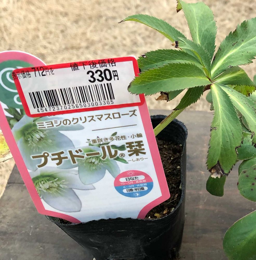 1ヵ月前、ホームセンターで見つけた見切り品のクリスマスローズ プチドール栞