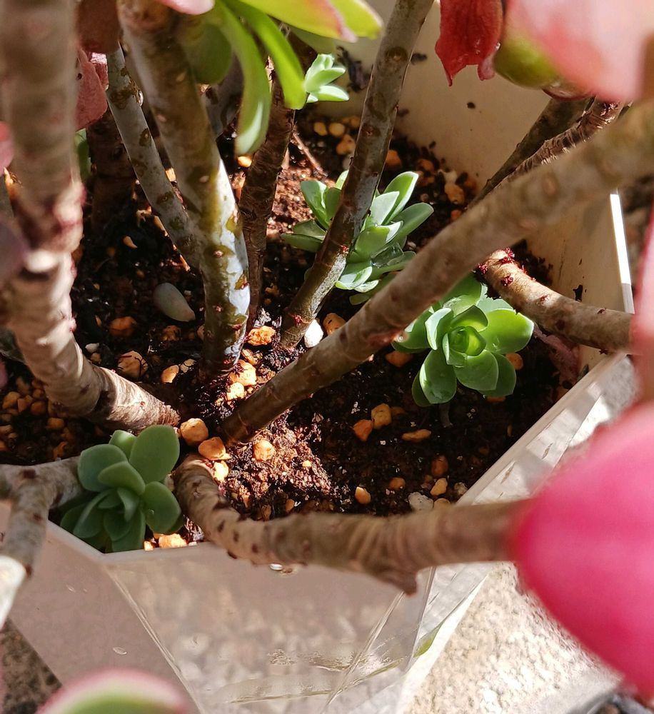 強いと思っていた薄化粧も夏に弱りかけたけど、元気になり花芽を付けて、もうすぐ咲きそうです。根元にも小株が…👀