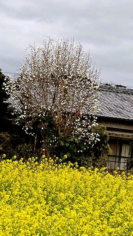 菜の花畑の🟡と木蓮の⚪️のコントラストが春の色で綺麗ですねー💖