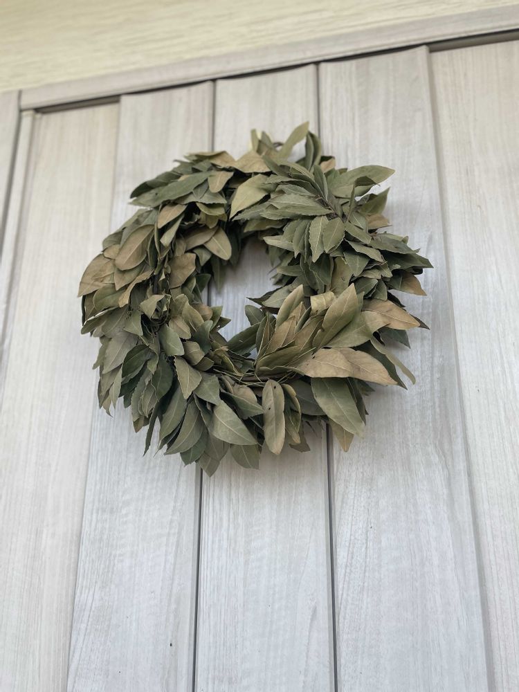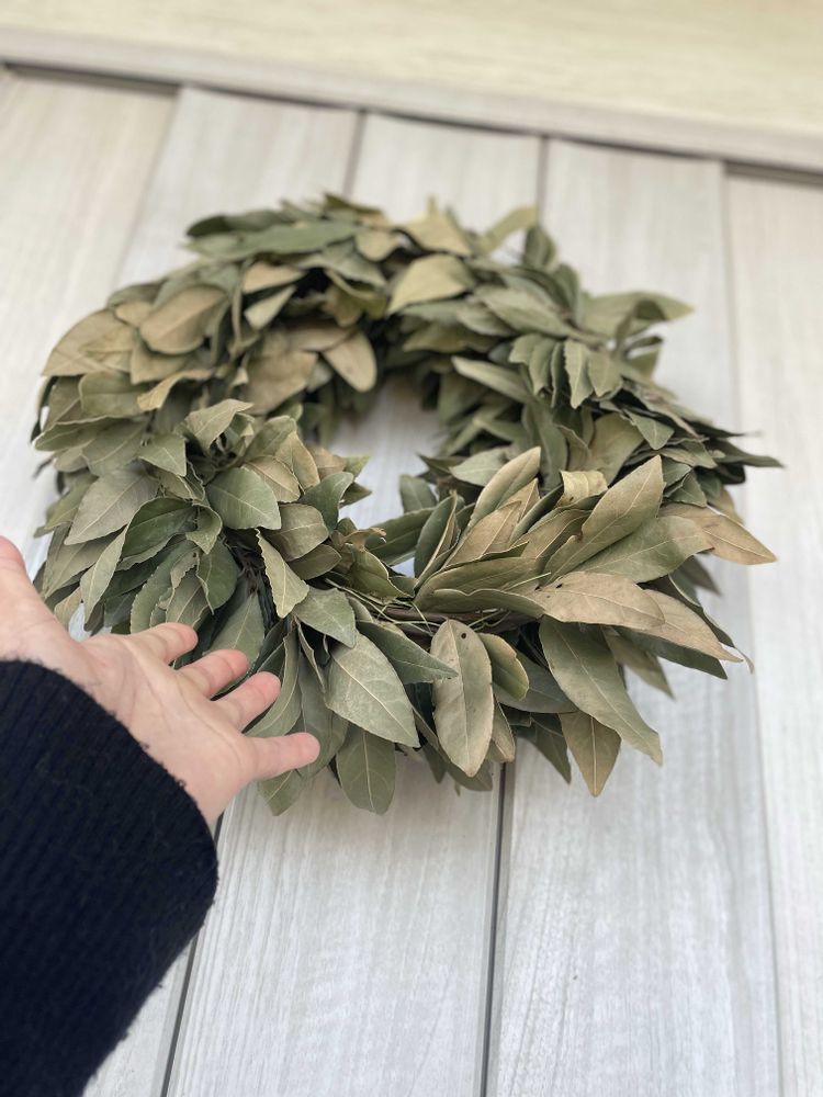 昨日友達にミモザを少しカットして届けたら月桂樹(ローリエ)の巨大リースと手作りの可愛い林檎をいただきました🍎🍃