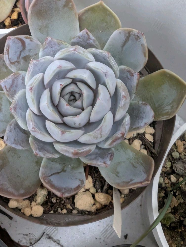 今朝庭🏡多肉ちゃんのスノーバニー。夏に周りの葉が大きくなって中央部分だけキュッとなってます😍