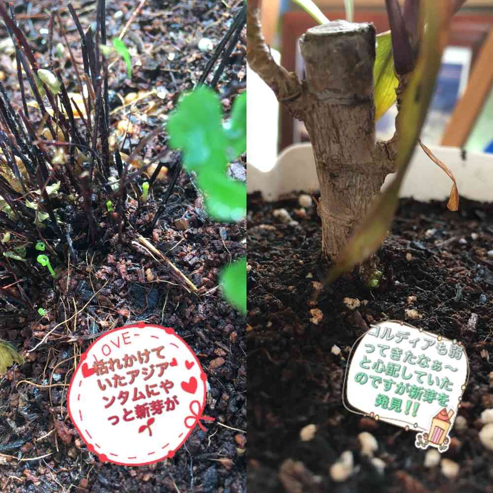 ちょっと心配していたアジアンタムとコルディアに新芽を発見です‼️