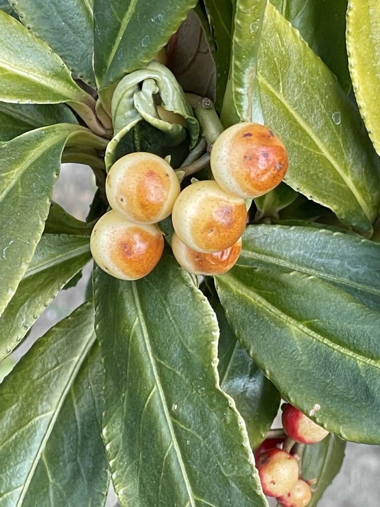 一枚目。チョコあ〜んぱんにそっくり⁈と思って何の木かな?とGoogleさんに聞いてみたらカラタチバナと。合ってるでしょうか(・・?)