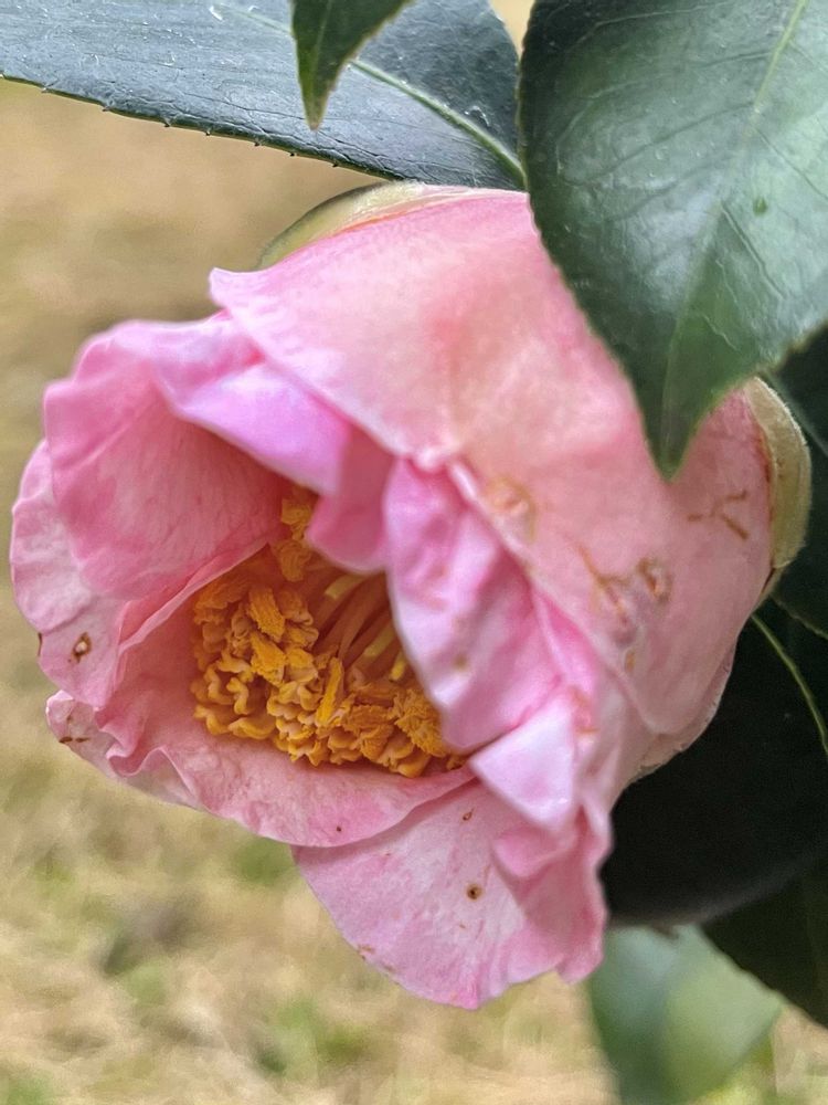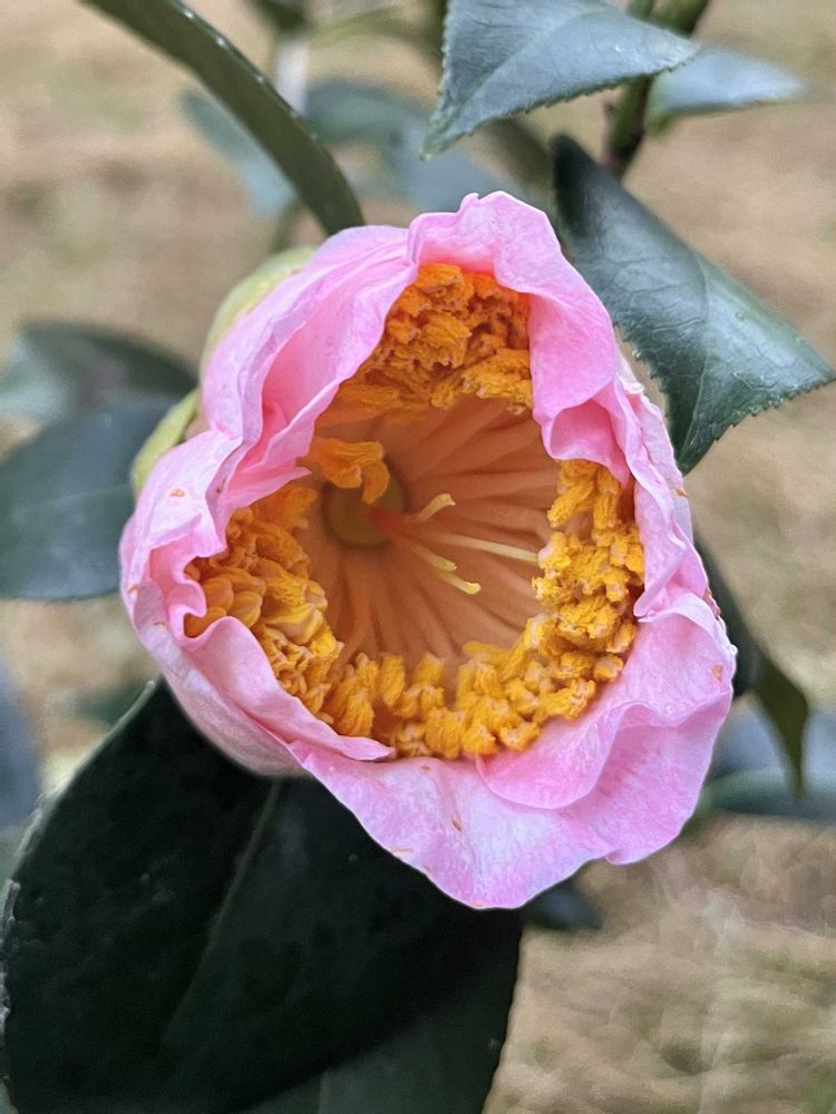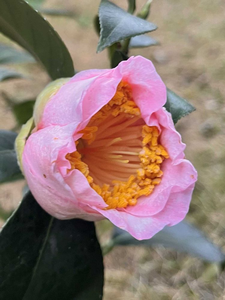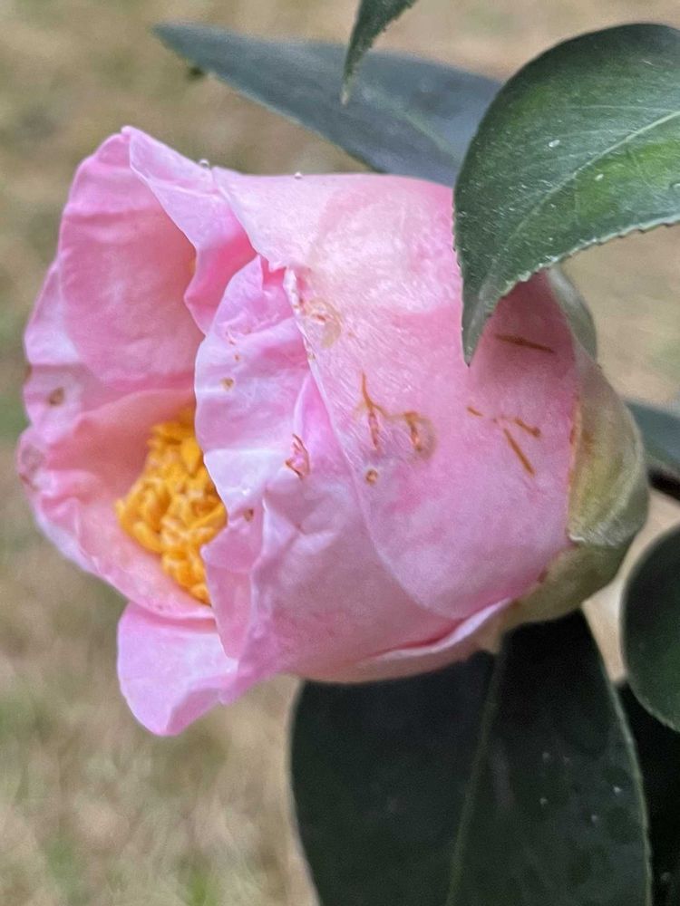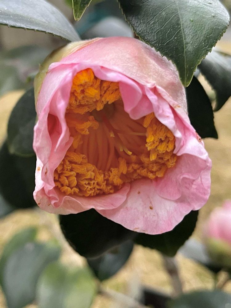 肥後椿・那古井の春が咲き始めました🙌毎回、疑問に思うのは白地に桃覆輪ではないんだよね…うっすらそれっぽいけど🏷️合ってるのか心配💦