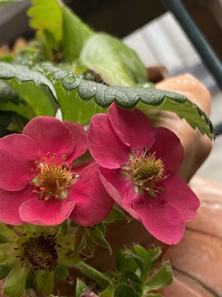赤いお花のイチゴ🍓が、小さな可愛い実をつけ始めました♪🎶