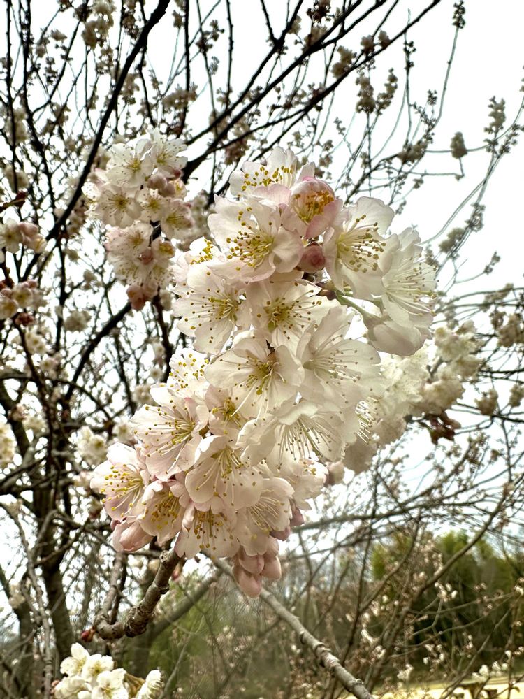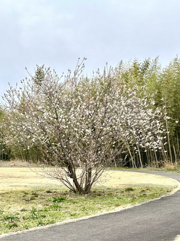 サイクリングロード沿いのサクラ(名前知らず)🌸と木曽ポタ・パークリンク大会🚴40Kmコース参加者の皆さん😊