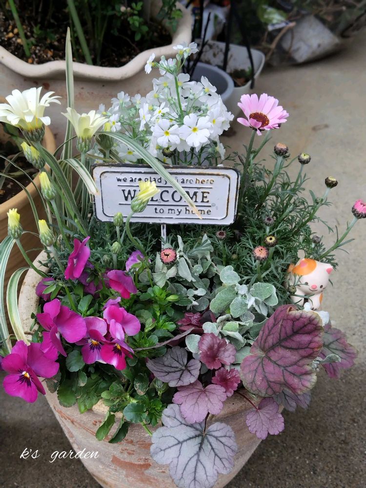 寄せ植え素敵です💚💖ヽ(=´▽`=)ノ🌱✨なかなか暖かくなりませんね😂今日も風が冷たいです🍃マフラーが外せません😅