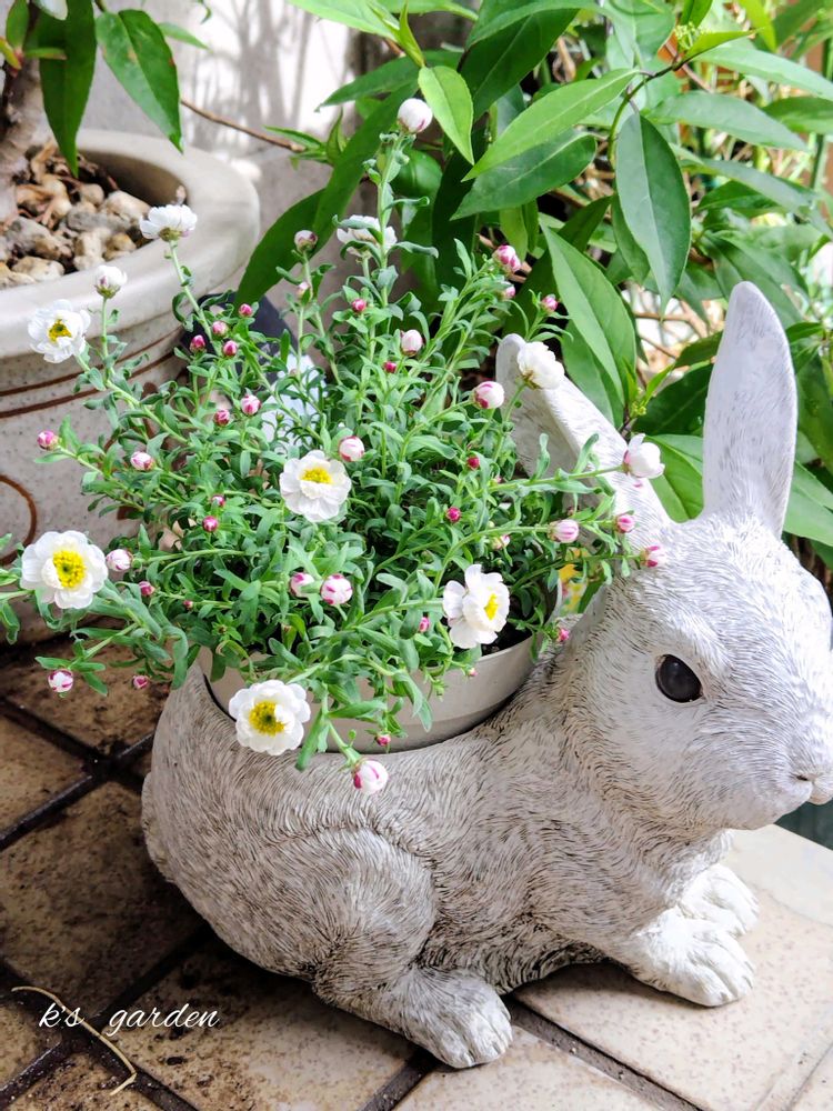 うさぎさんの鉢カバー🐰可愛くてネットで何年も前に買ったけど、少し欠けちゃって😅