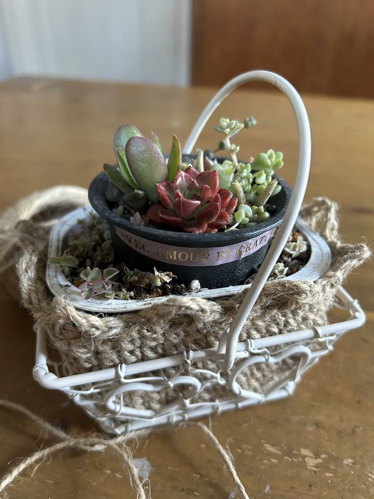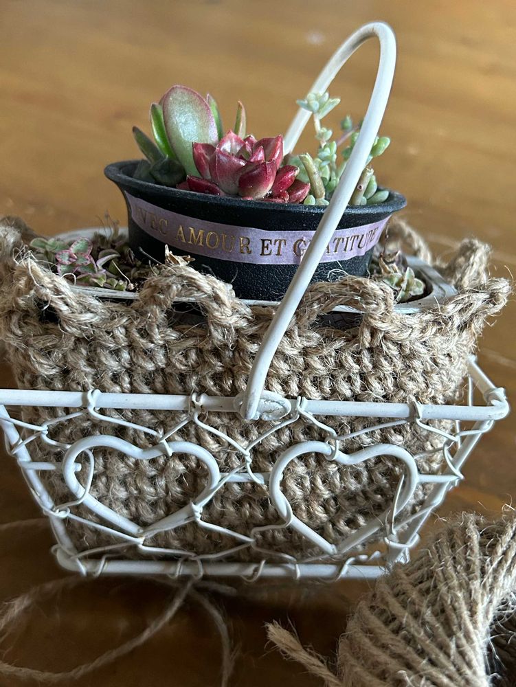 麻紐カゴの網目からコンニチワ🖐️が理想です