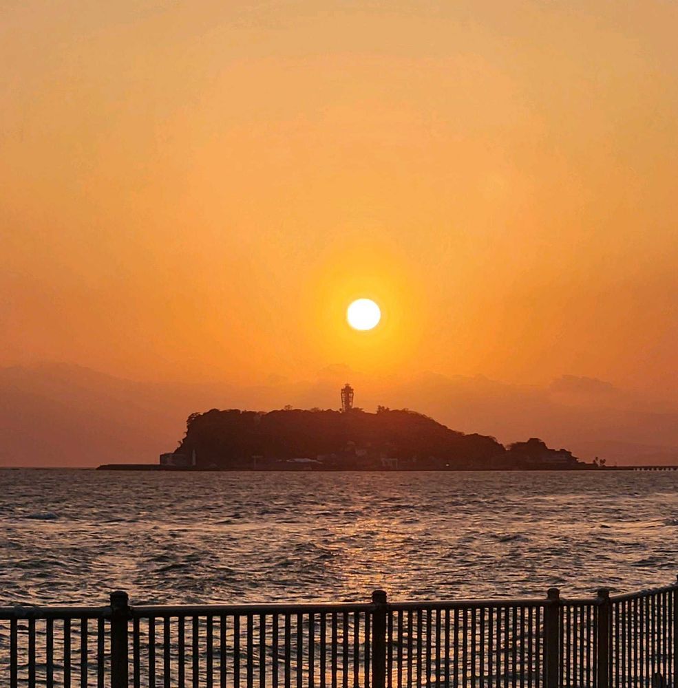 江ノ島は、ちょうど夕日が落ちる時に車で通ったので🌇🚗³₃