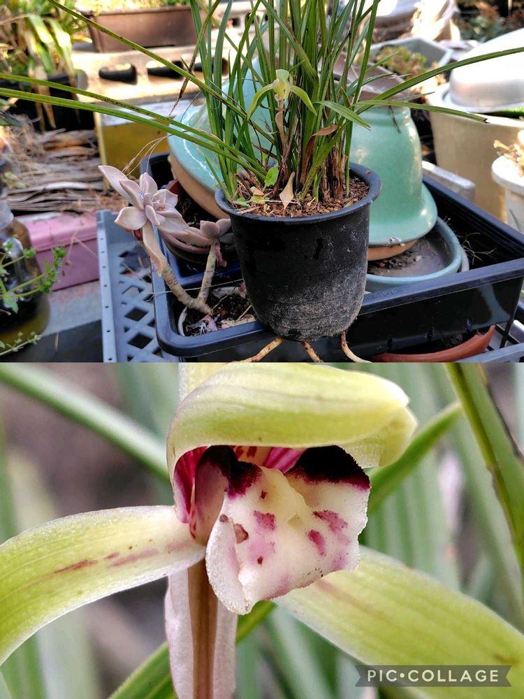⑤すみっこのシュンランに花がついていたので表に出してあげました。